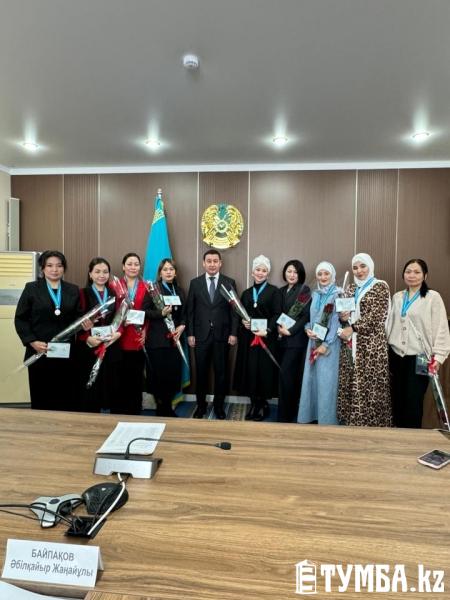 В преддверии Международного женского дня 8 Марта аким Актау Абилкаир Байпаков вручил нагрудные знаки «Алтын алқа» и «Күміс алқа» 55 многодетным матерям.